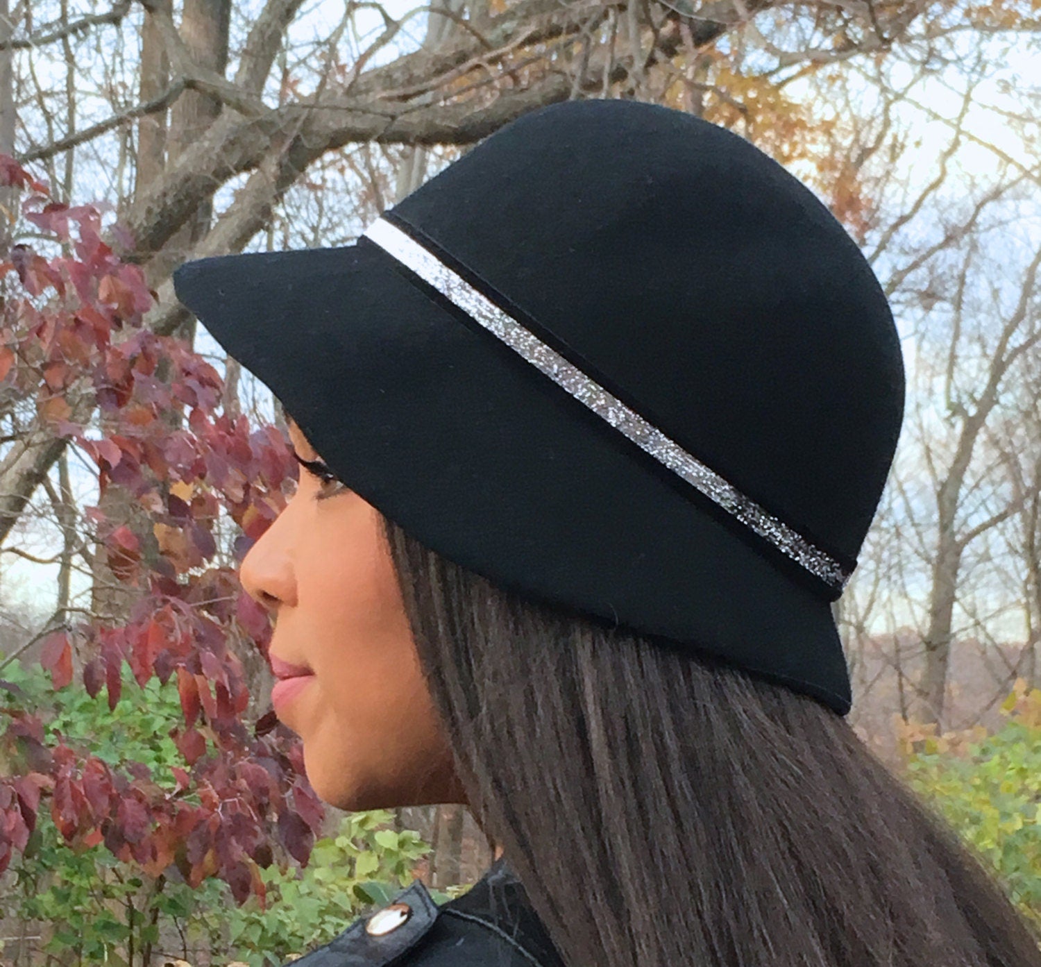 Black wool Cloche hat with Silver Metallic trim-Winter hat-Christmas-Polo-Winter Race- Holiday Party-Chruch Hat-Gift Hat-Teen Woman Hat!
